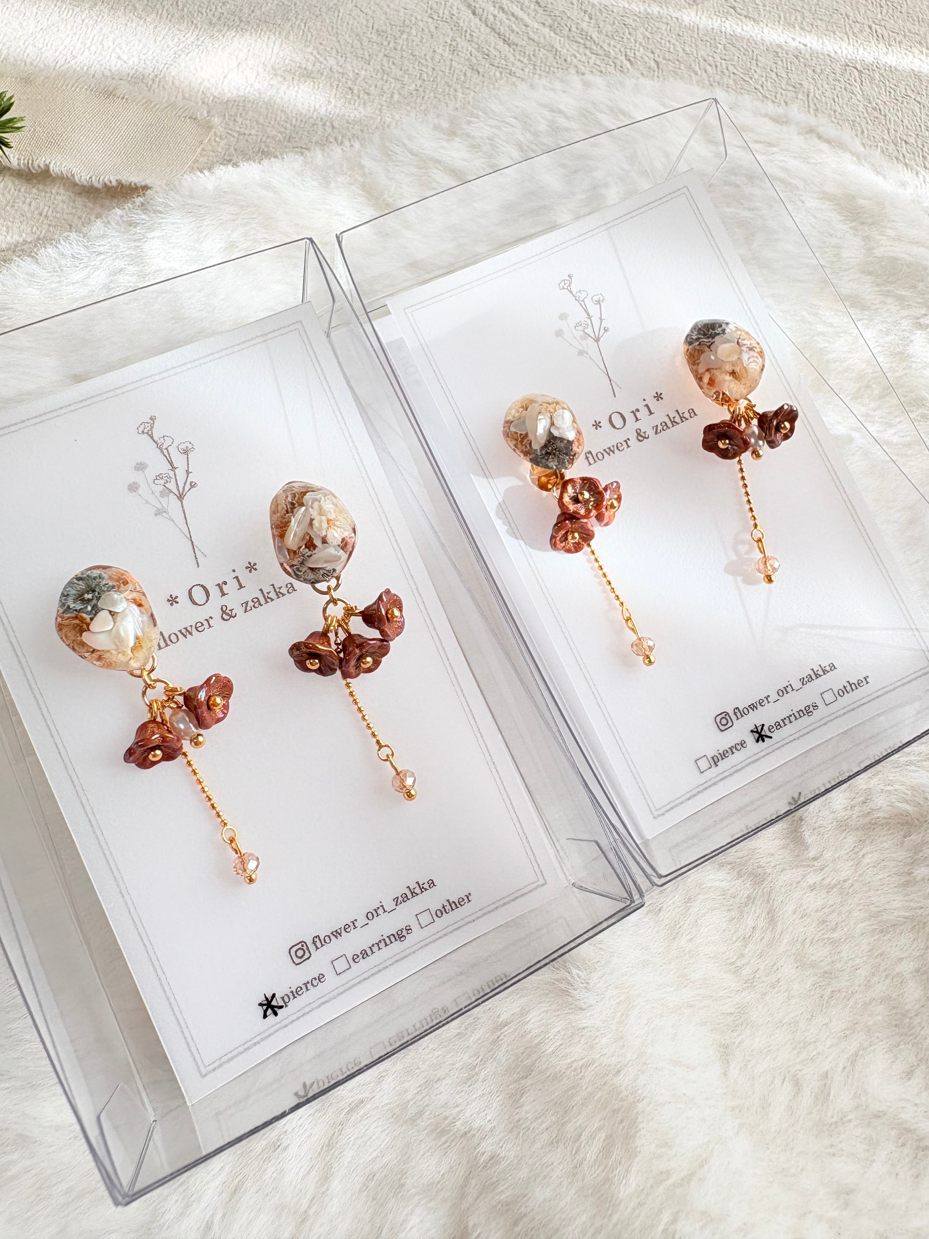 ブルーの小花がアクセント。ロイヤルココアカラーの小花アクセサリです✳︎