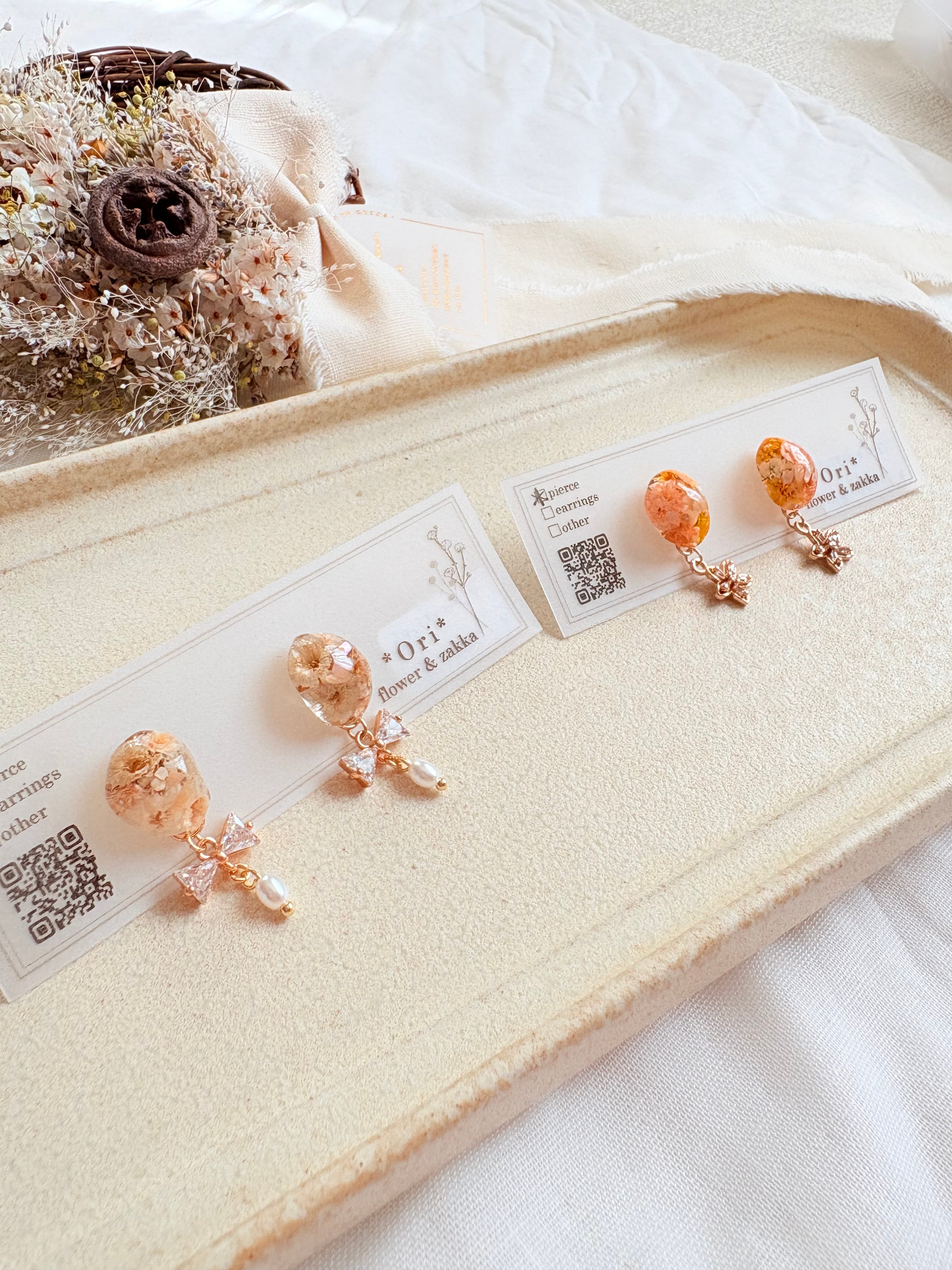 リボンやお花のパーツがキラリ。